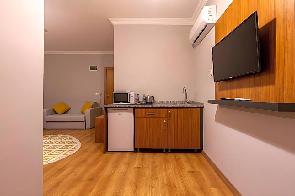 In the well-equipped kitchenette, guests will find kitchenware, an oven, a microwave and an electric kettle. The air-conditioned studio offers a flat-screen TV with satellite channels, soundproof walls, a mini-bar, a seating area as well as city views. The unit has 3 beds.
